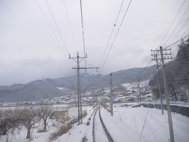 側窗拍的風景,長野雪真的好多,厚厚的感覺真棒!